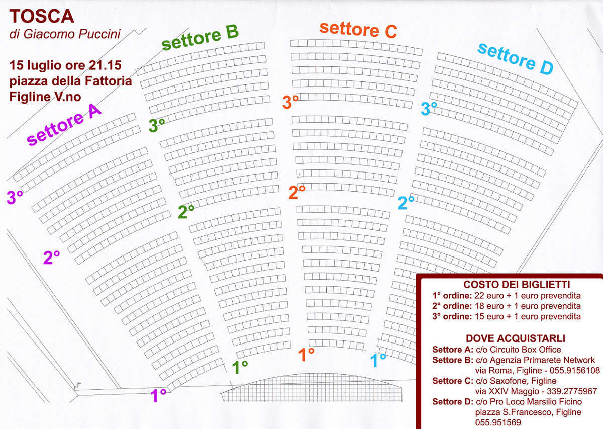 Per informazioni: tel e fax 055.8711291 - cell. 327.9993172; prevendita presso Circuito Box Office, Saxofone (339.2775967), Proloco Figline (055.951569) e Agenzia Viaggi Primarete Network (055.9156108). Costo dei biglietti: 1° settore 22 euro, 2° settore 18 euro, 3° settore 15 euro più 1 euro a biglietto per la prevendita.
