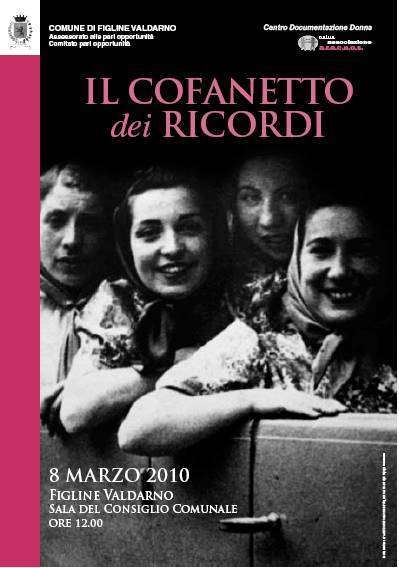 Sarà presentato lunedì 8 marzo alle 12 nella sala consiliare del municipio, in occasione della Festa delle donne, il “Cofanetto dei ricordi”, una pubblicazione promossa dall'assessorato alle Pari opportunità del Comune di Figline, dal Comitato Pari opportunità e dal Centro Documentazione Donna.