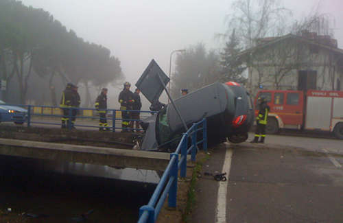 Ha sbandato con l’auto e dopo essersi ribaltato è rimasto in bilico sul ponte del torrente Giglio, incastrato all'interno dell'abitacolo del veicolo.