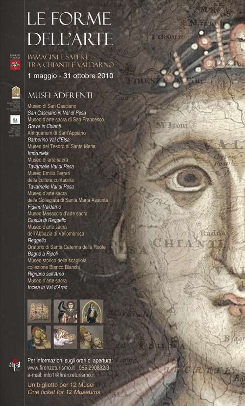 LE FORME DELL’ARTE, IMMAGINI E SAPERI TRA CHIANTI E VALDARNOL’evento Le forme dell’arte, dal 1 maggio al 31 ottobre 2010, è promosso dai comuni aderenti ai Sistemi museali e territoriali del Chianti fiorentino e delle Verdi Terre di Toscana (Impruneta, San Casciano in Val di Pesa, Tavarnelle Val di Pesa, Barberino Val d’Elsa, Greve in Chianti, Incisa in Val d’Arno, Rignano sull’Arno, Bagno a Ripoli, Figline Valdarno, Reggello). Tutte le amministrazioni partecipano con i loro musei e monumenti di maggior pregio, che per la prima volta sono accomunati in un progetto unitario.